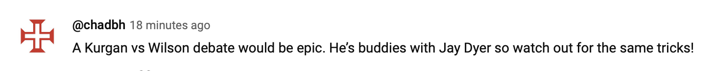 Anyway, that’s the tag line: Andrew Wilson cowardly runs away from debate with Sedevacantist Kurgan.